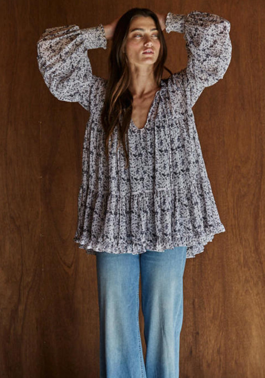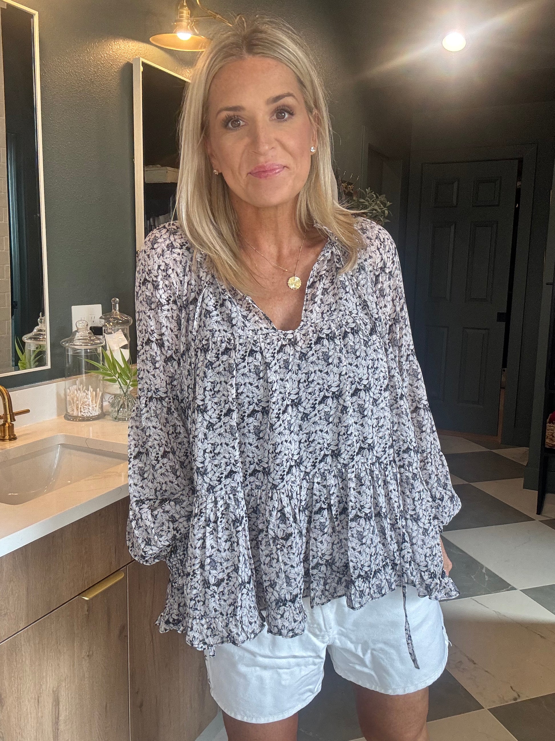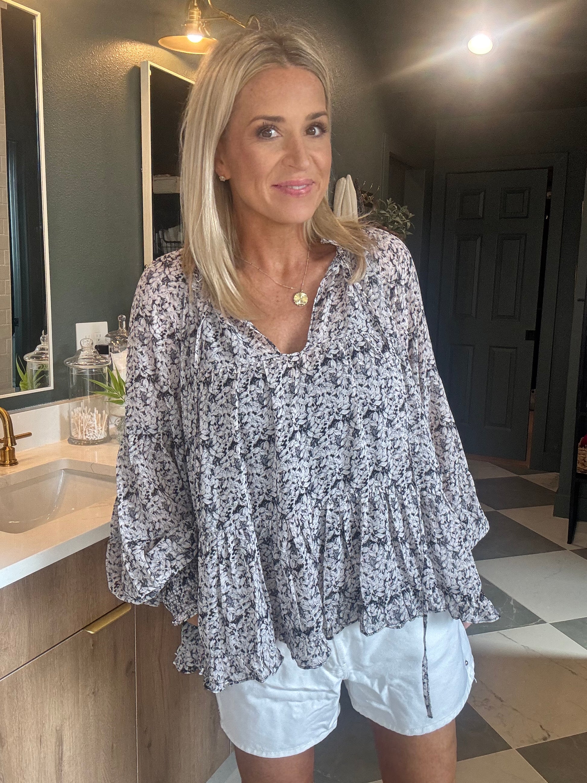 The Blossom Top combines classic black and white with playful billow sleeves. Its swinging silhouette dances with every step, and the included camisole keeps your look effortlessly chic and ready for any occasion.