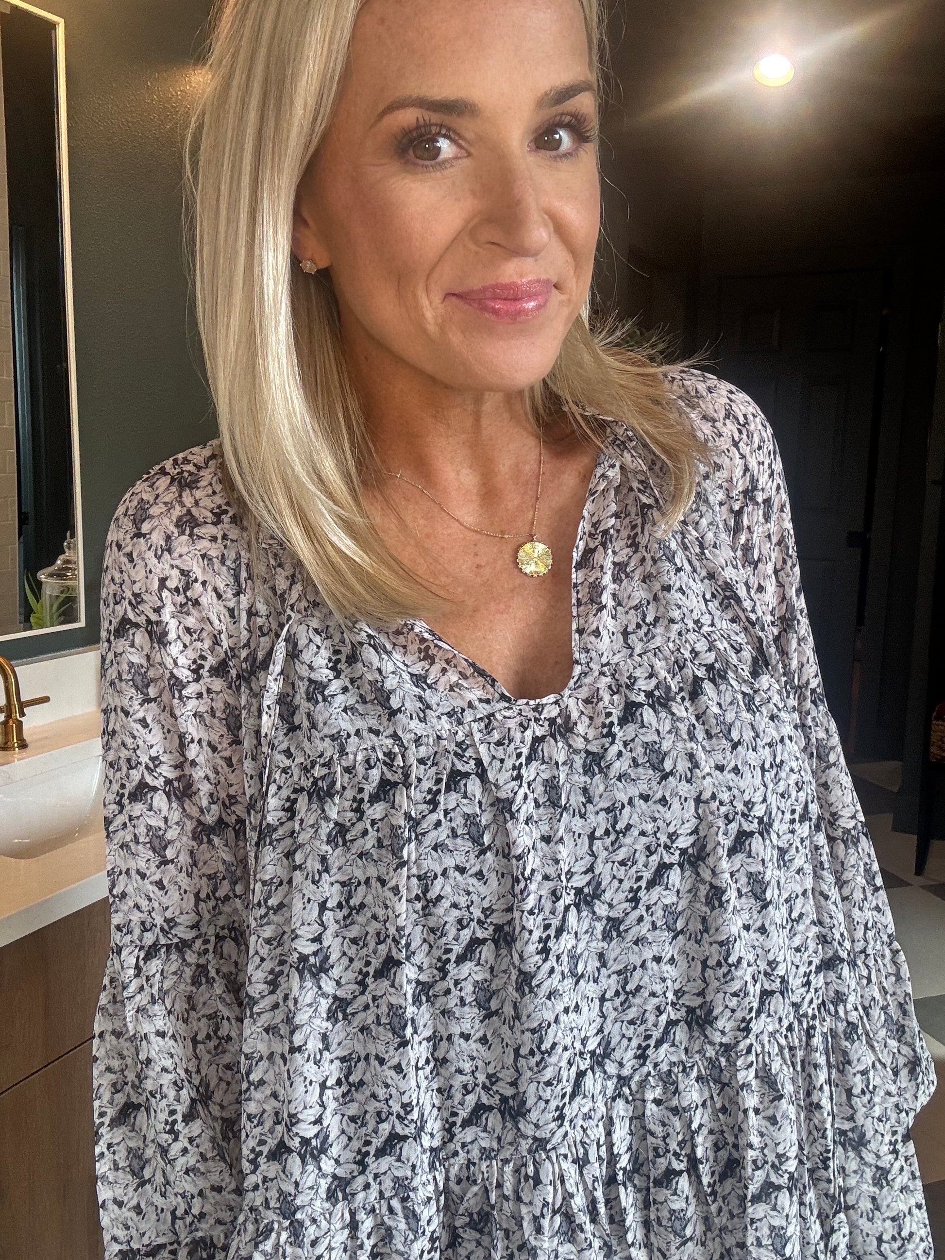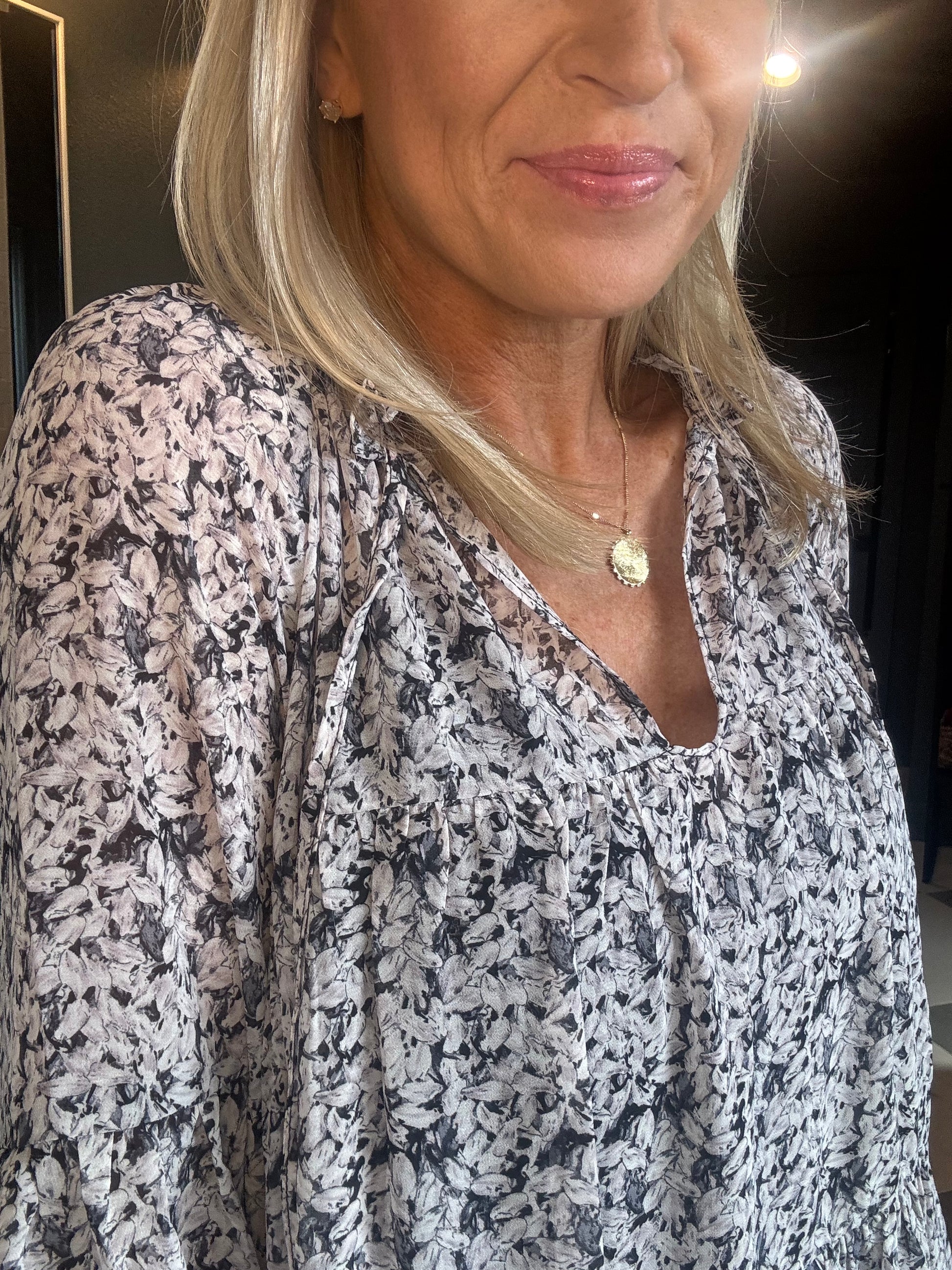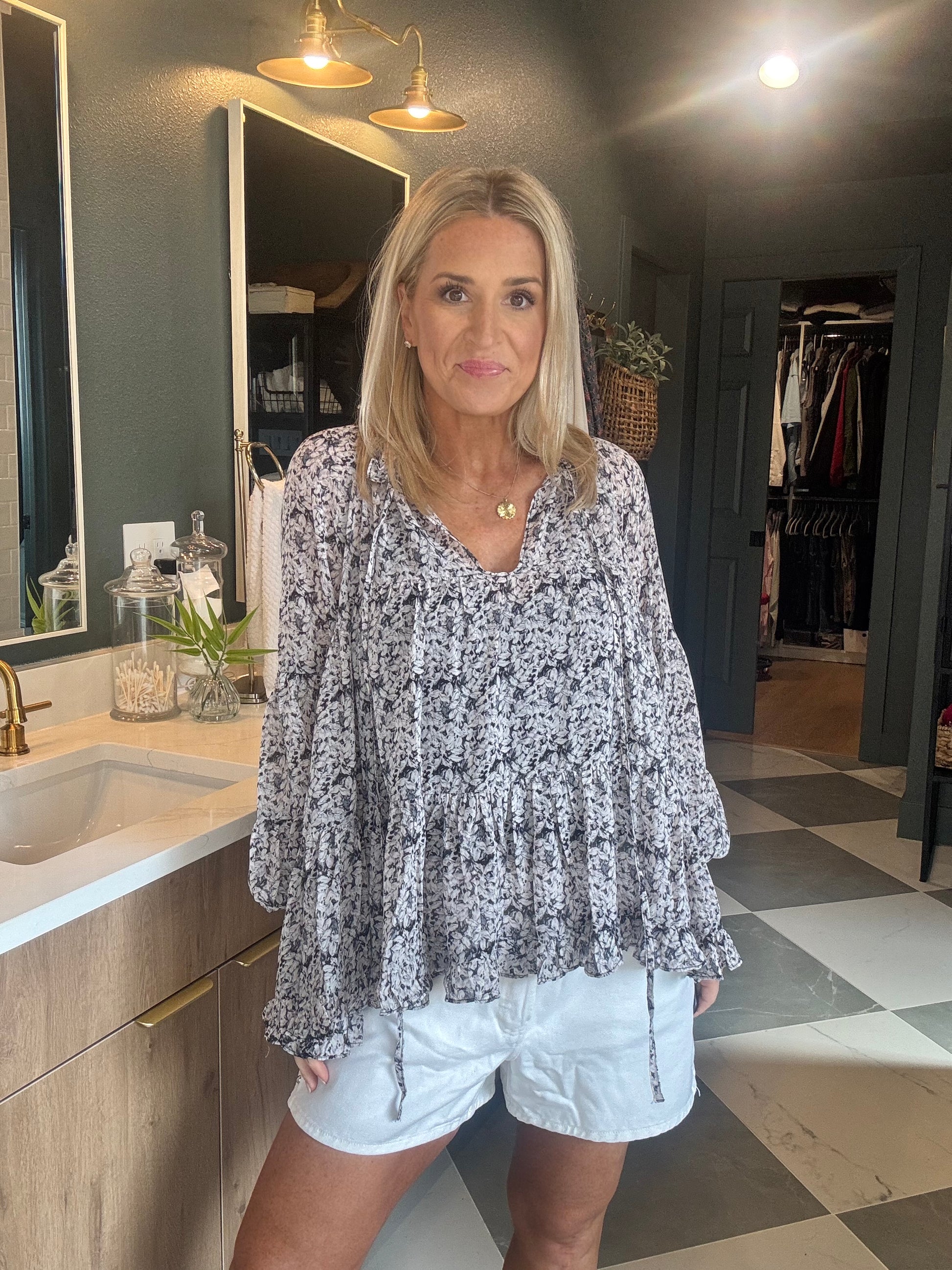 The Blossom Top combines classic black and white with playful billow sleeves. Its swinging silhouette dances with every step, and the included camisole keeps your look effortlessly chic and ready for any occasion.