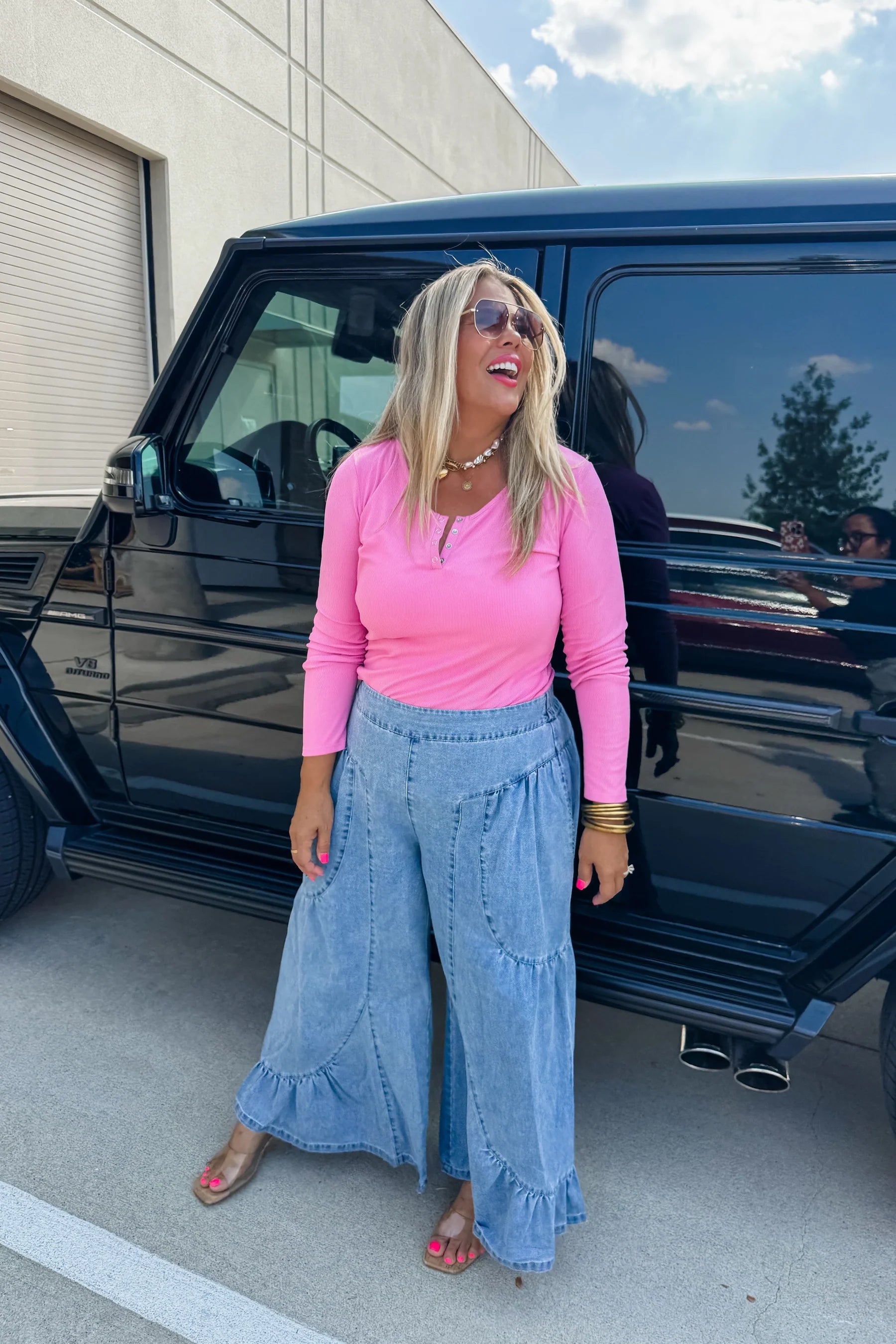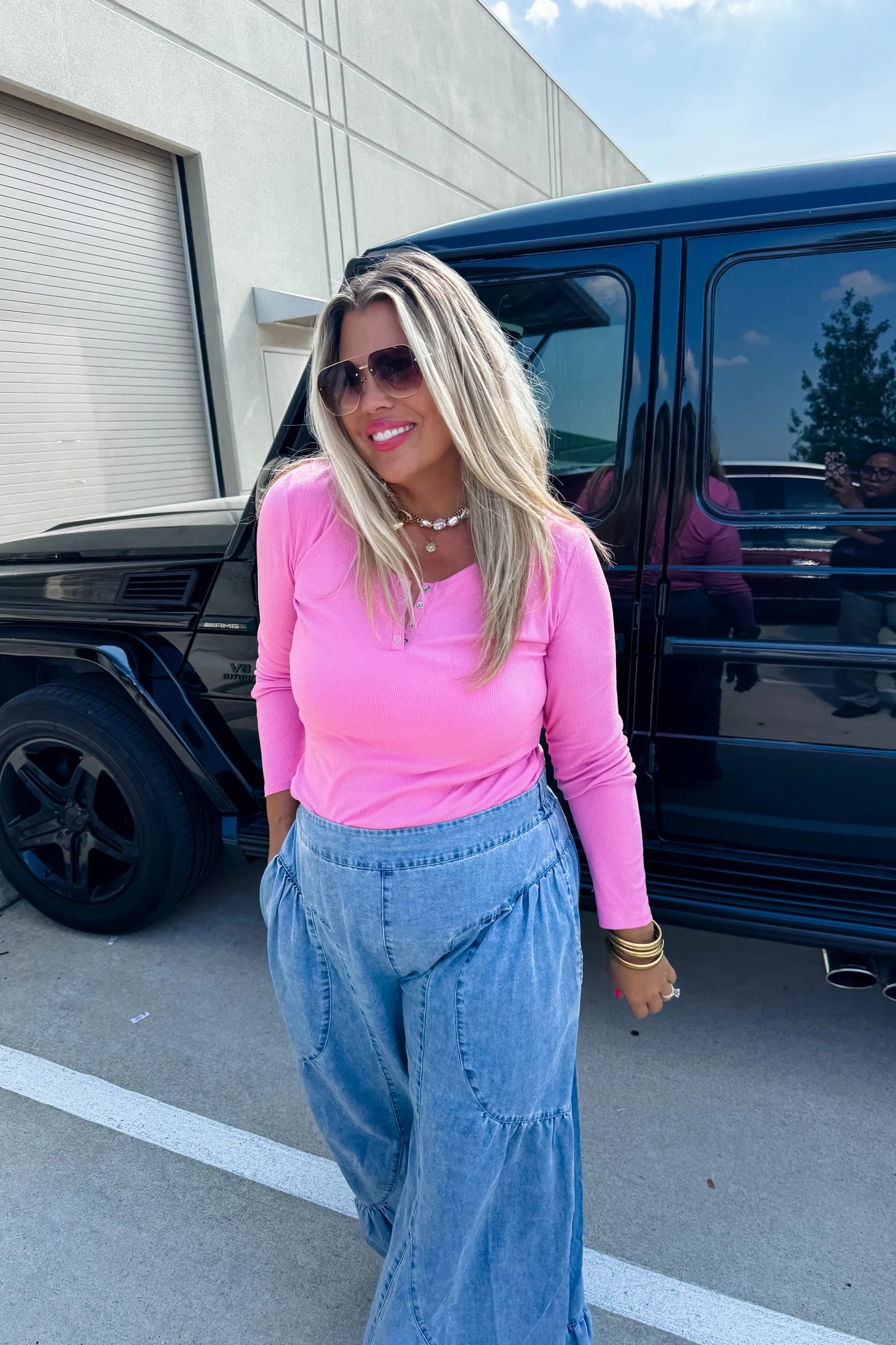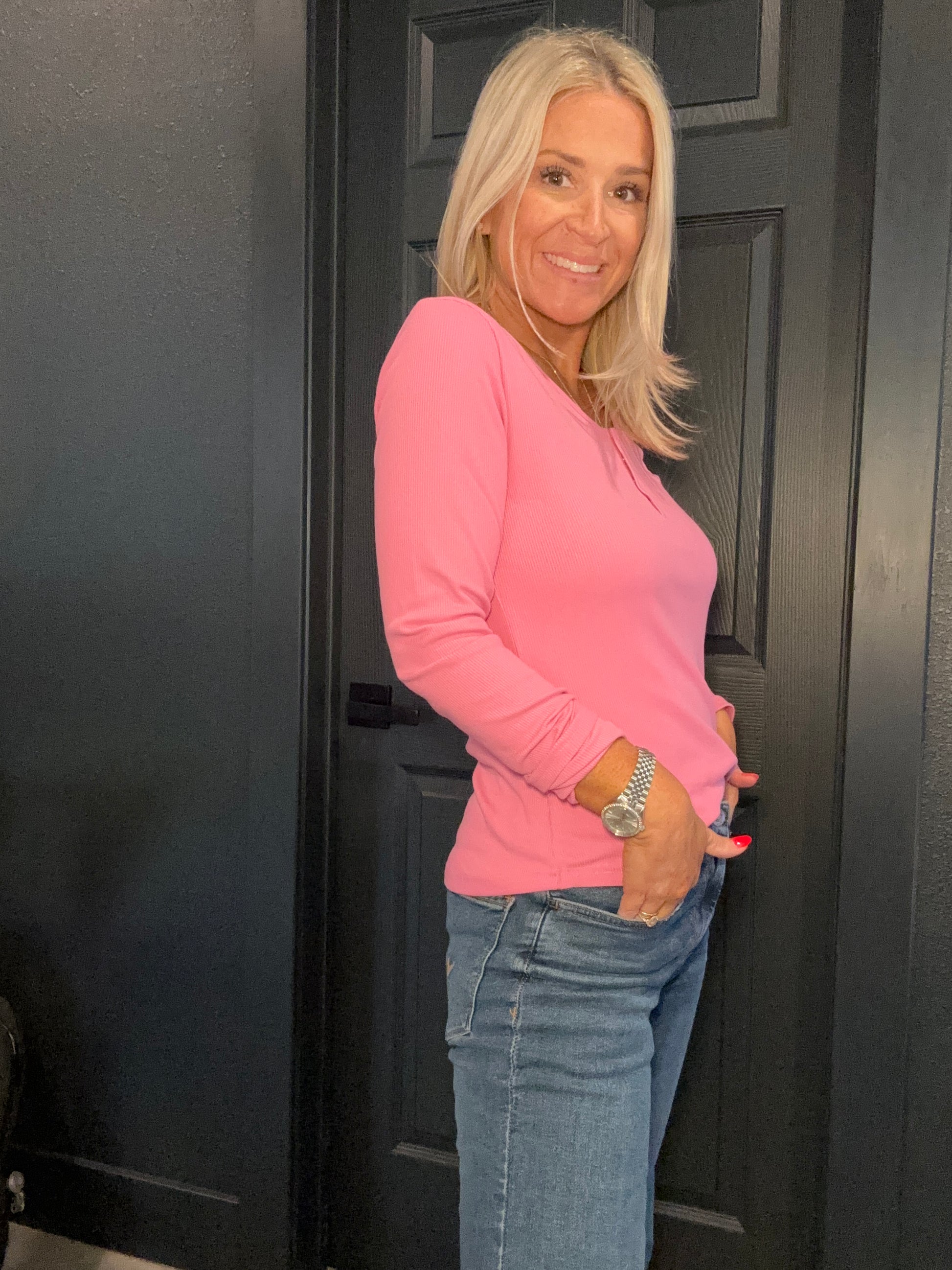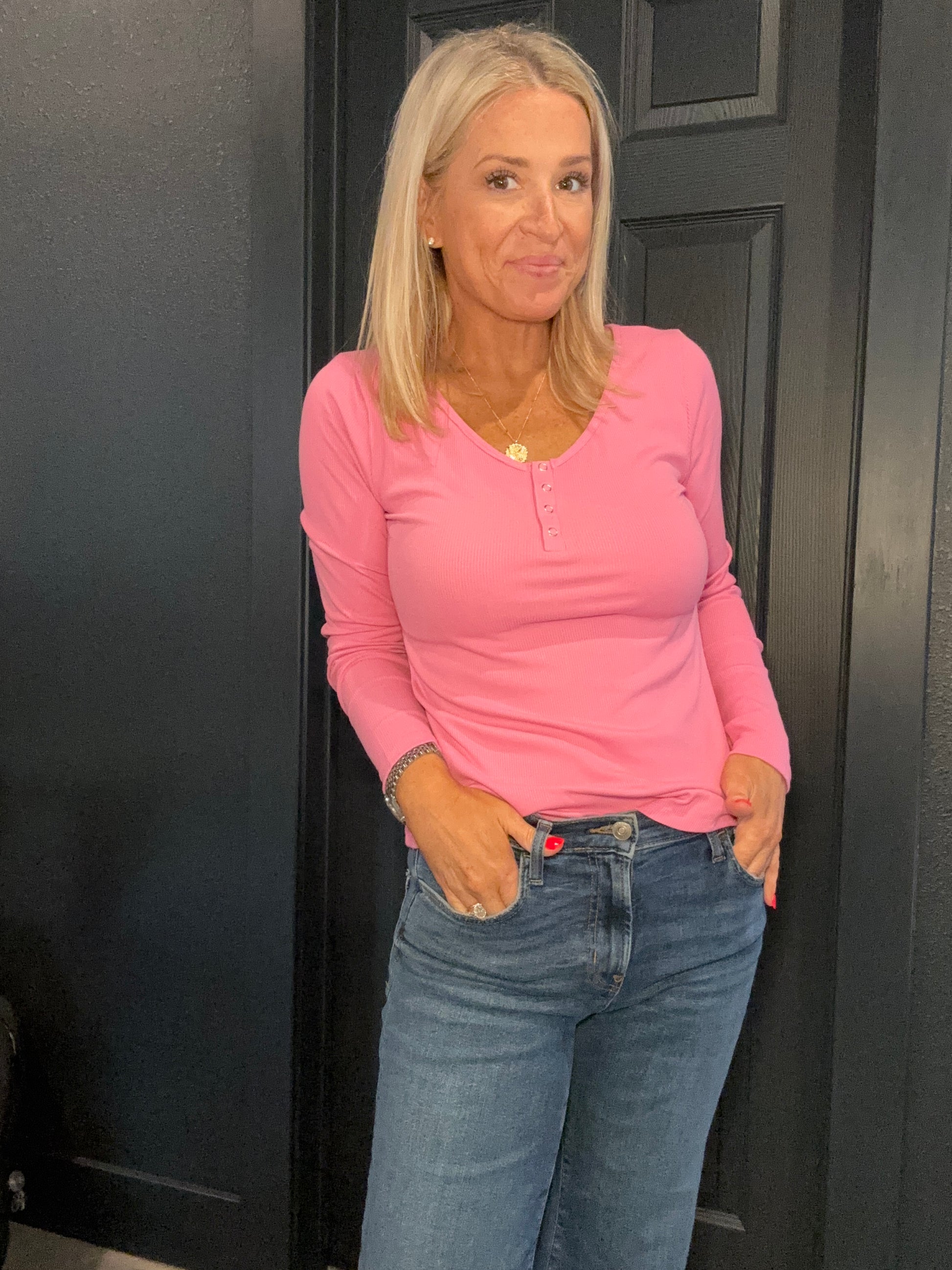 The Brooklyn Snap Henley is curated from super soft, stretchy ribbed fabric. This long-sleeve design features three snap buttons on the neckline and thumbhole sleeves. Perfect for layering or wearing on its own.