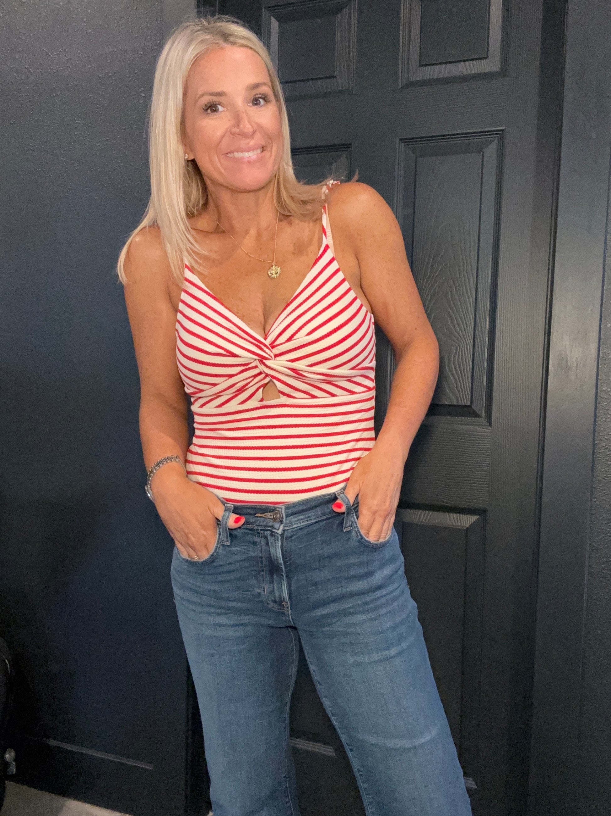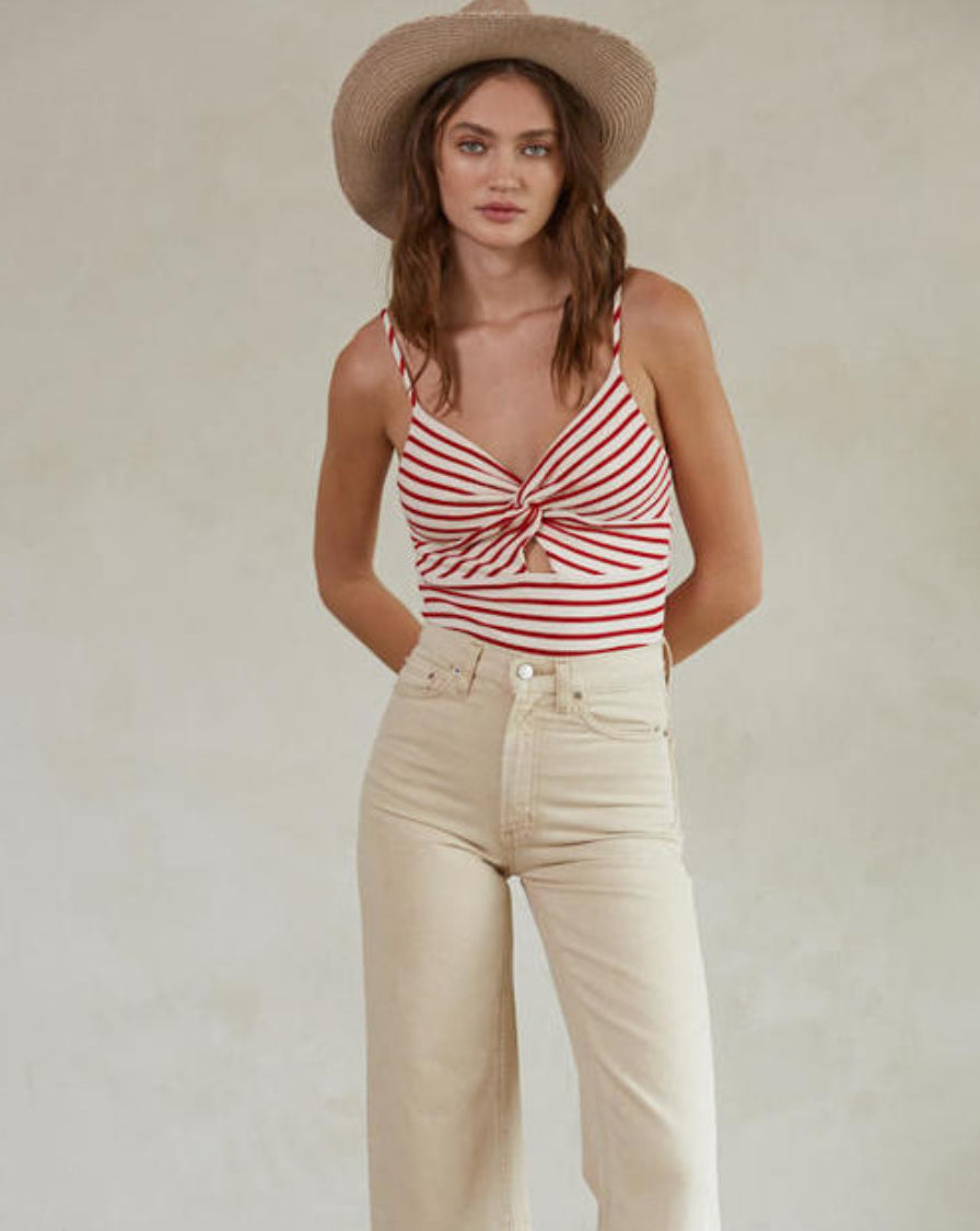 The Cardinal Bodysuit brings cozy waffle knit charm in off-white and red hues. Its playful knotted front and adjustable straps give you a flirty fit that’s both comfortable and cute. Ideal for layering or wearing on its own, this bodysuit adds a fun pop of style to any outfit.