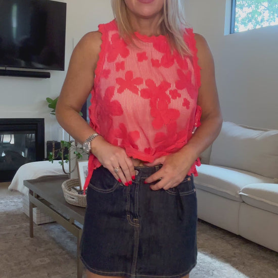This floral crochet side tying top is bringing all the sweet energy! Sheer floral crochet fabric creates a round neckline, relaxed bodice, and secures at the sides with double bow tying closure. Crochet trim lines the neckline, armholes, sides, and hem. Lining not included. + Floral crochet with crochet trim side tying top + Crochet trim round neckline + Side tying closure + Sheer crochet with floral detail + No lining
