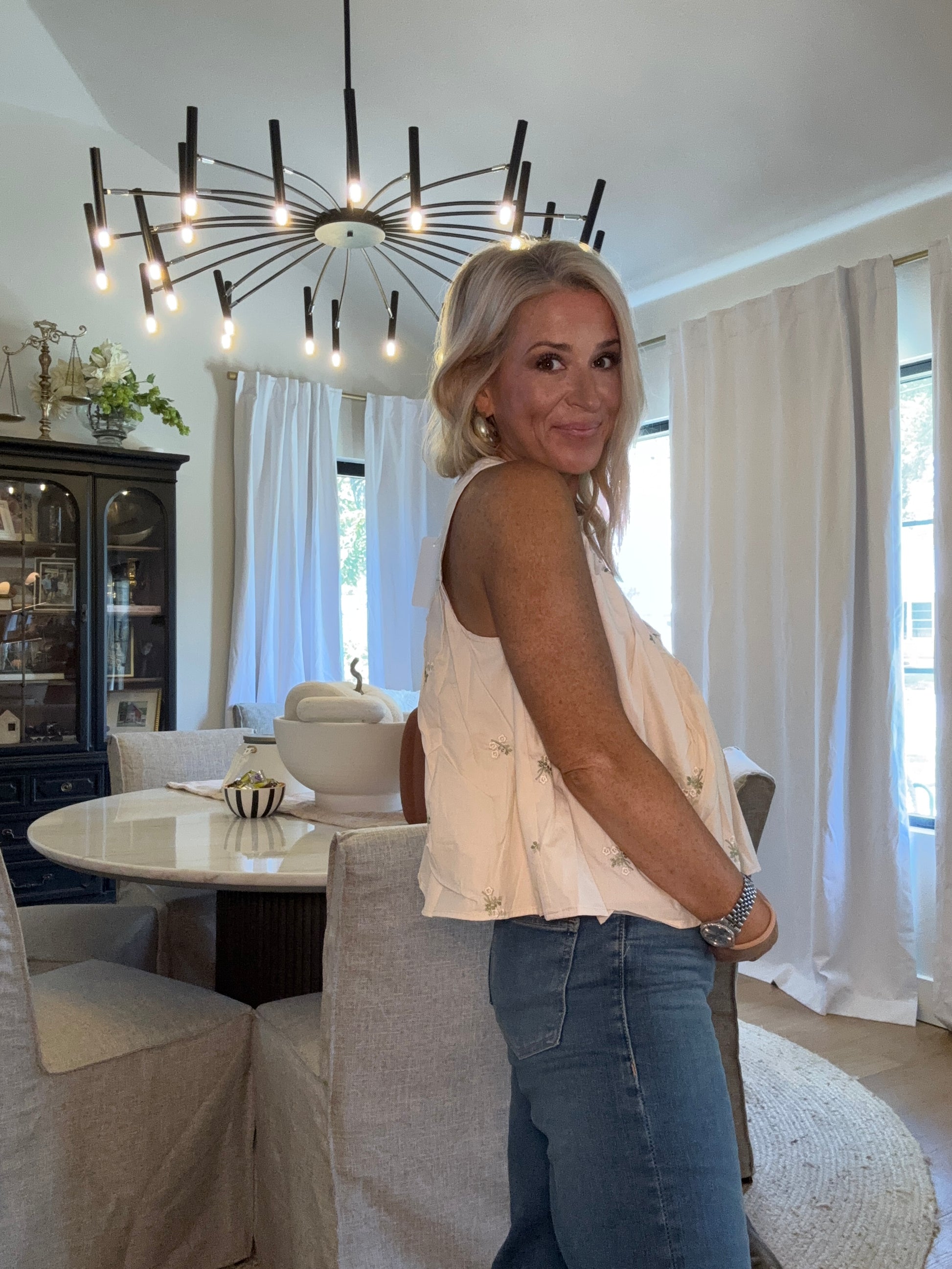 Embrace effortless charm with this Sage Green Embroidered Babydoll Sleeveless Top. Designed for a breezy, feminine aesthetic, this top features a delicate floral embroidery scattered across its soft, lightweight fabric. The babydoll silhouette adds a relaxed and flowy touch, creating a flattering, airy fit perfect for warm weather styling. The wide bib-style yoke enhances the structure of the top, while gentle pleats cascade from the yoke, offering a voluminous, comfortable shape. Its sleeveless cut allows for easy layering or standalone wear.