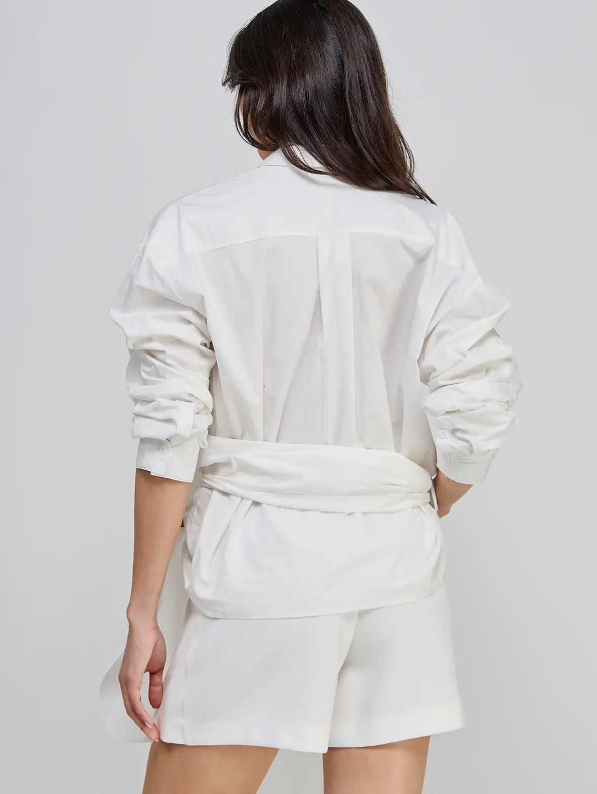 TUCK SLEEVE WRAP TIE CLOSURE SHIRTS -Cotton Shirts -Lapel collar and V-neck -Wrap front with draped three-quarter length sleeves -Front wrap closure with self tie. -